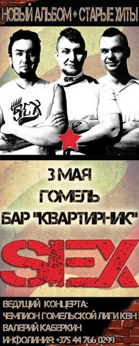 3 траўня .  З прэзентацыяй альбома B.D.S.M.   Горад над Сожам наведае адна з самых харызматычных і драйвовых гуртоў Беларусі СЕКС