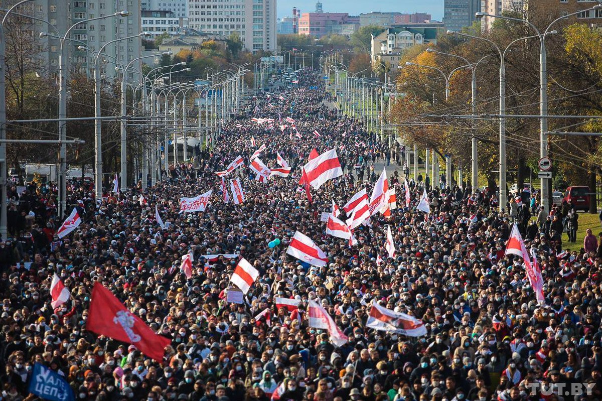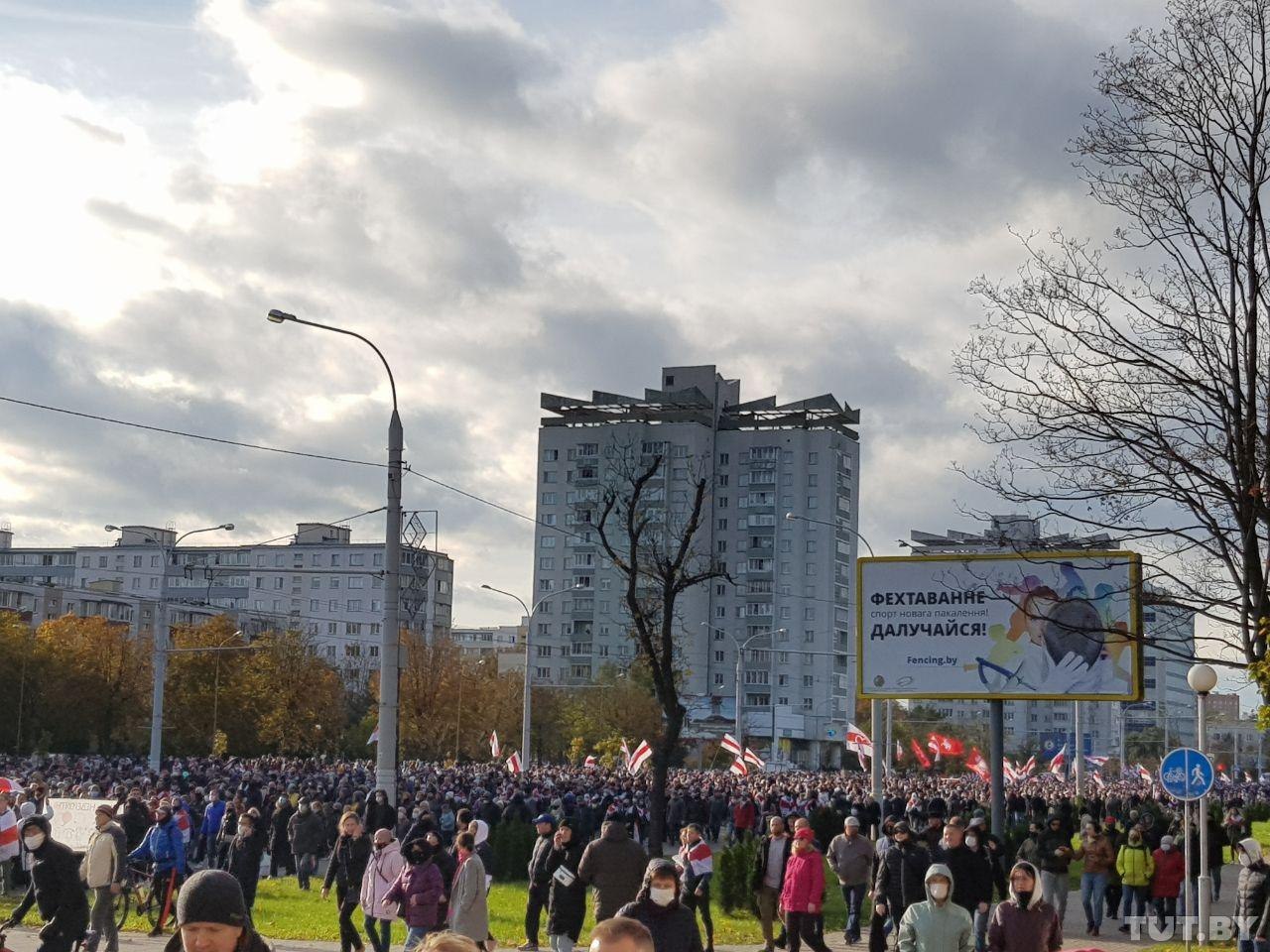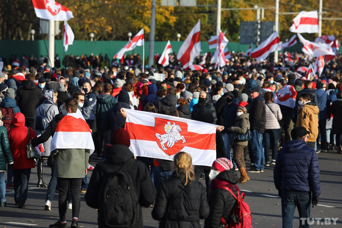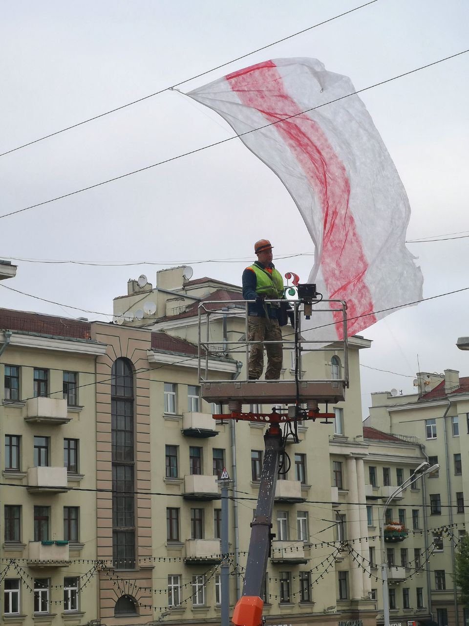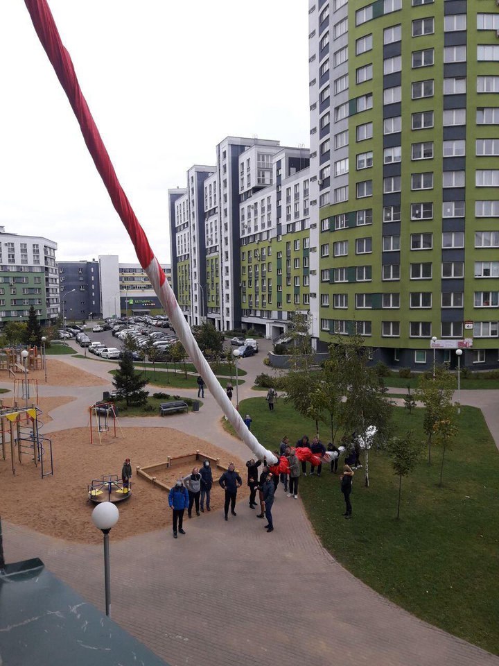 Сегодня утром в ЖК «Каскад» в Минске пытались поднять огромный бчб флаг. Это была попытка побить мировой рекорд! Утверждается, что флаг имеет размер 71×36 метров, а его площадь — 2556 квадратных метров. На видео можно увидеть, как это было.