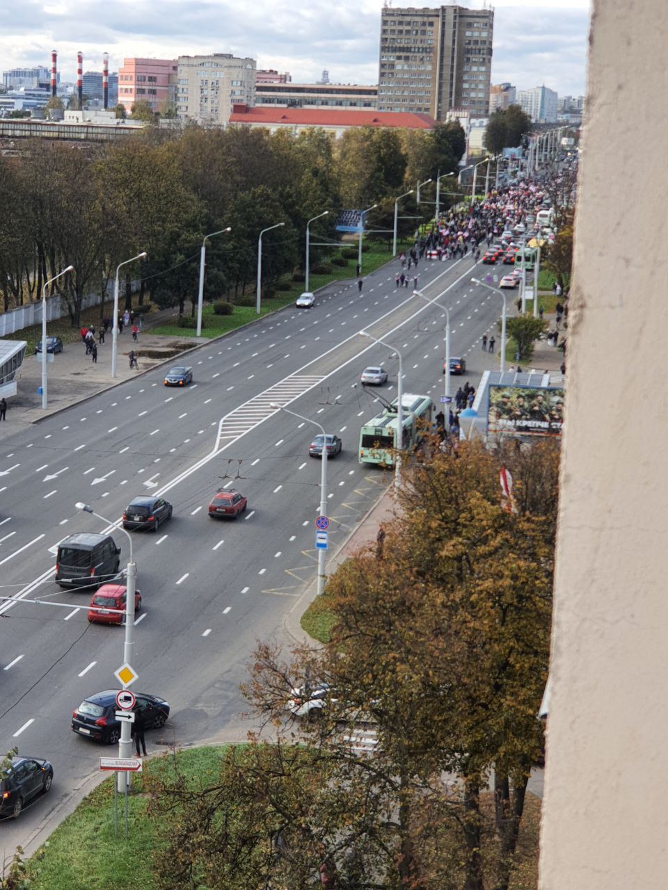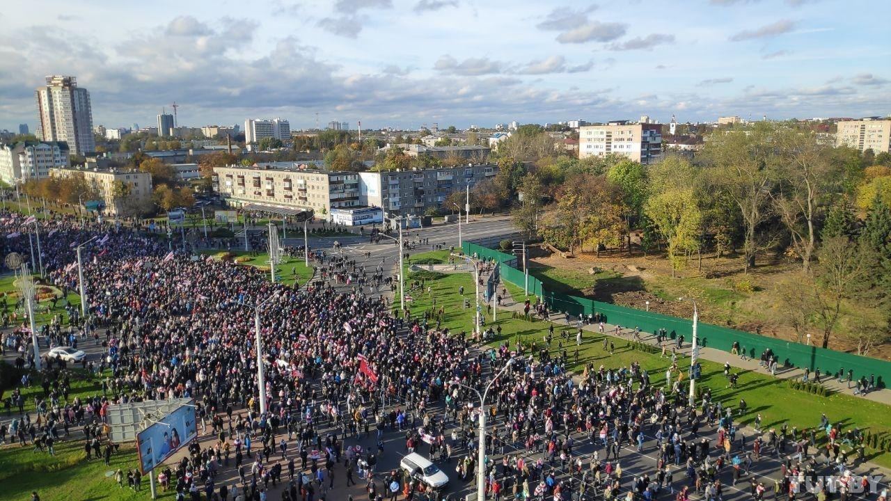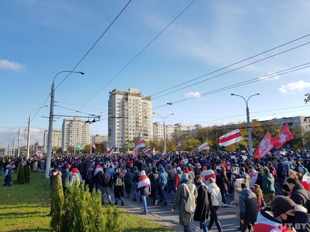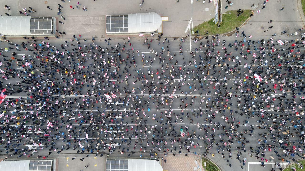 Сегодня утром в ЖК «Каскад» в Минске пытались поднять огромный бчб флаг. Это была попытка побить мировой рекорд! Утверждается, что флаг имеет размер 71×36 метров, а его площадь — 2556 квадратных метров. На видео можно увидеть, как это было.