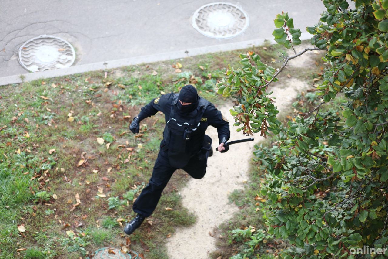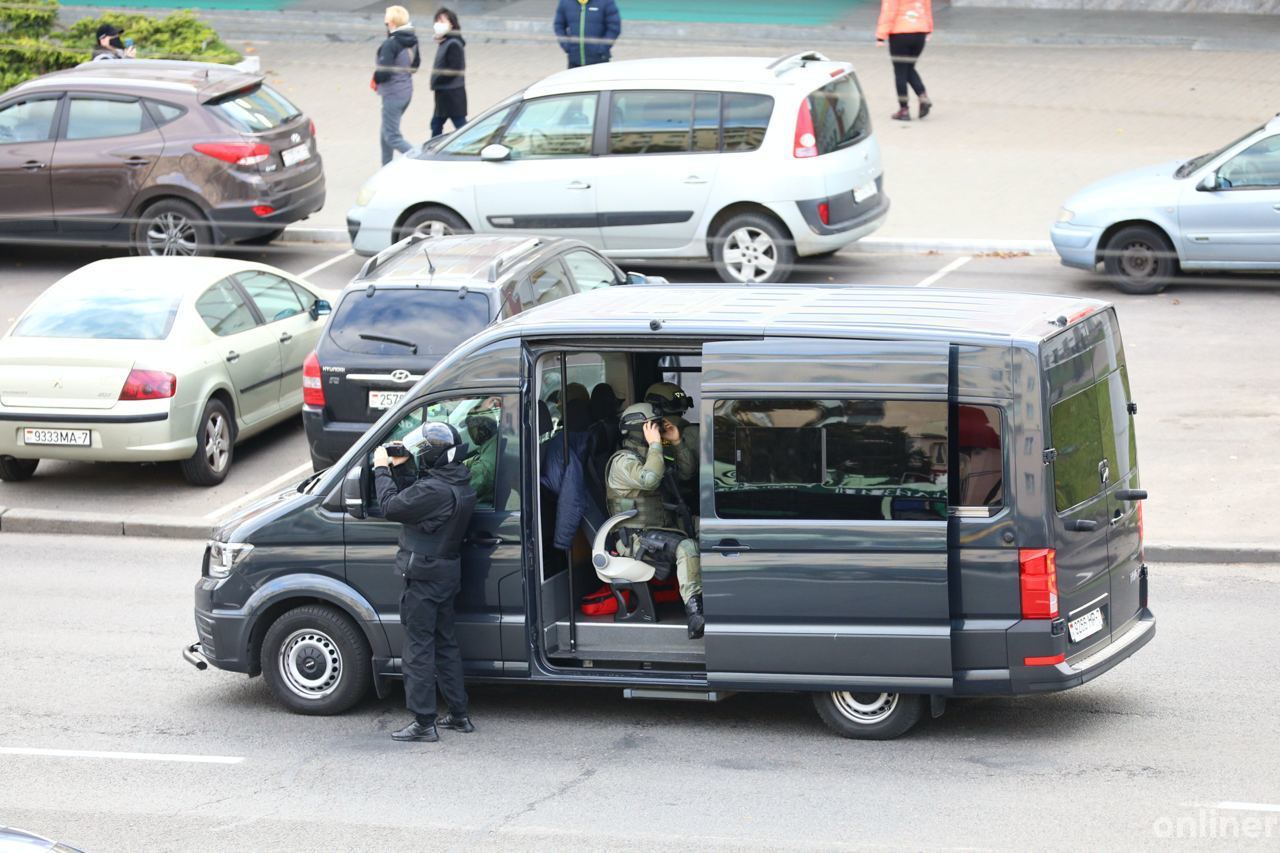 Позже к ЖК подъехал микроавтобус без опознавательных знаков, появились люди в балаклавах и со специнструментом