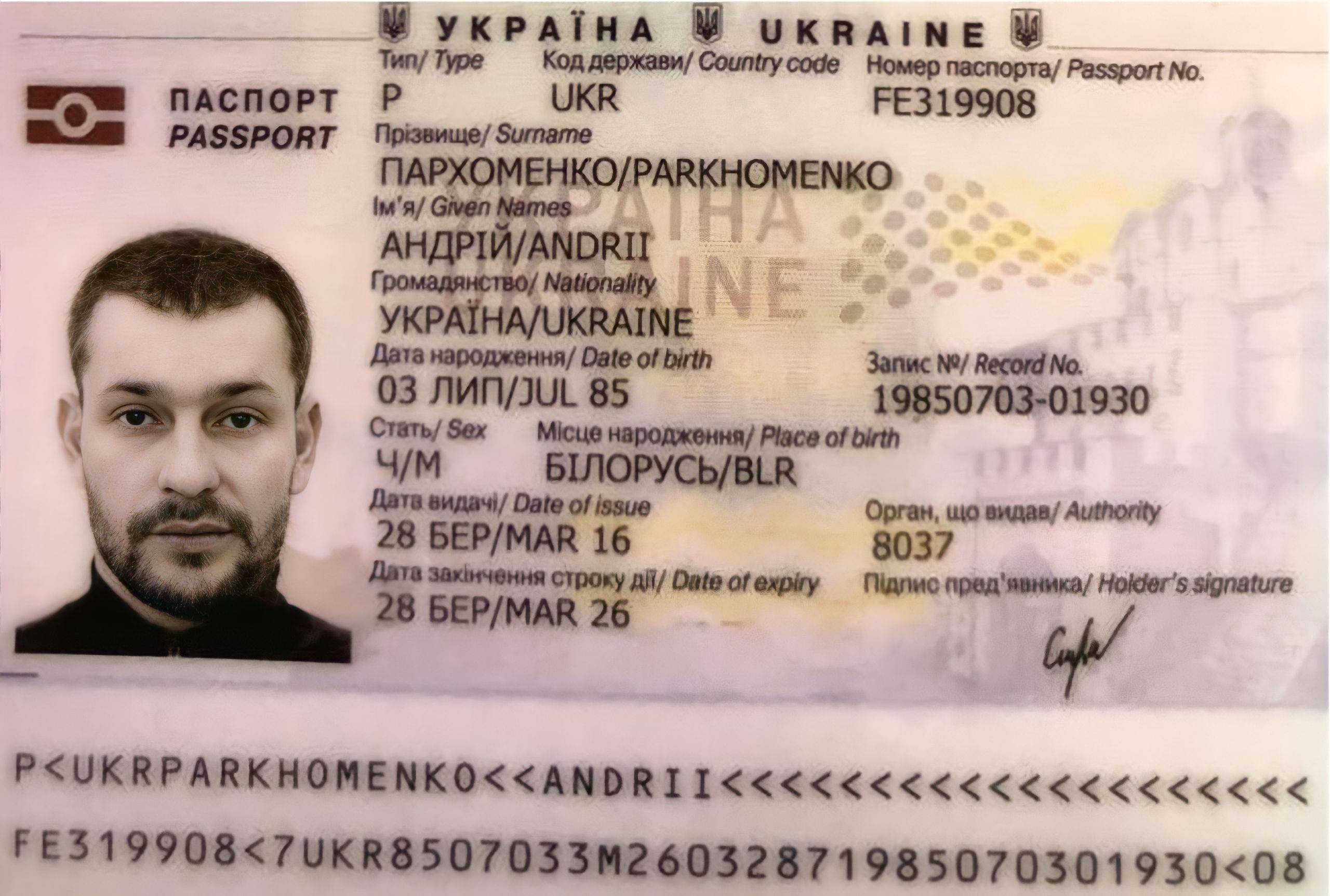 - Пархоменко Андрей Алексеевич — гражданин Украины, паспорт ТТ №333266, также киевская регистрация.