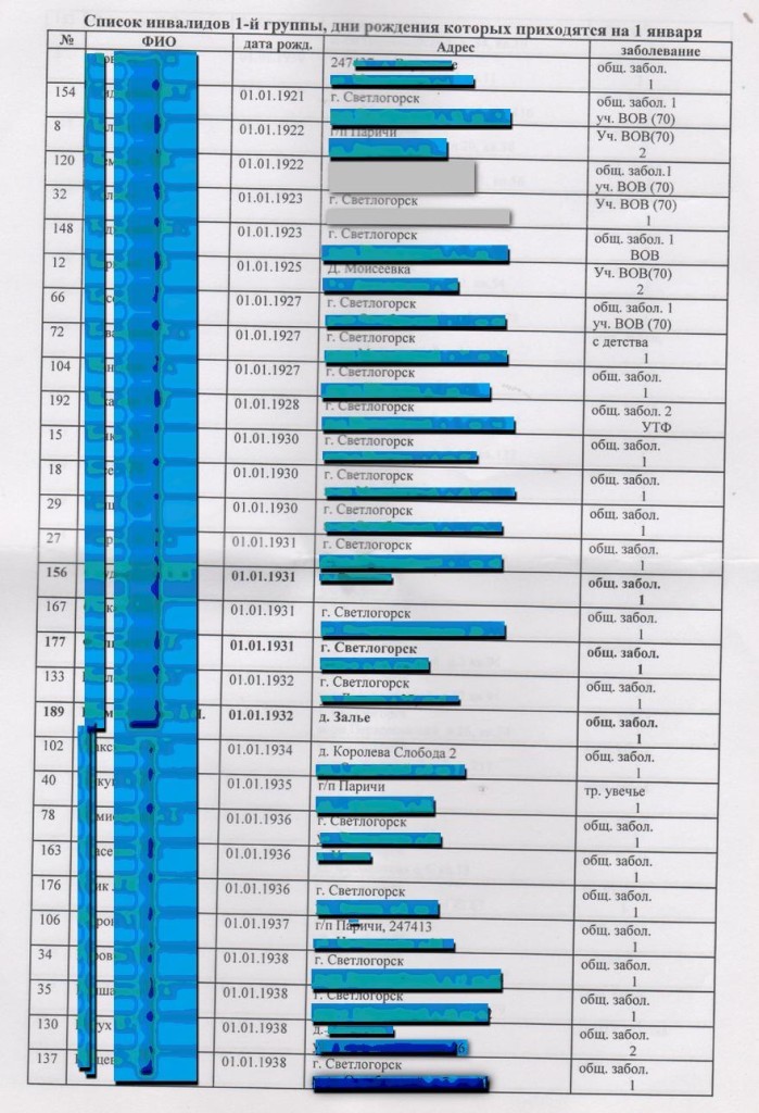 Анамалія у Светлагорску. Большасць інвалідаў 1-й групы нарадзіліся 1 Студзеня?!