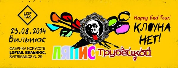 Концерт группы «Ляпис Трубецкой» в рамках прощального тура «Клоуна нет – Happy End Tour» состоится 23 августа в Вильнюсе на открытой площадке клуба Loftas.