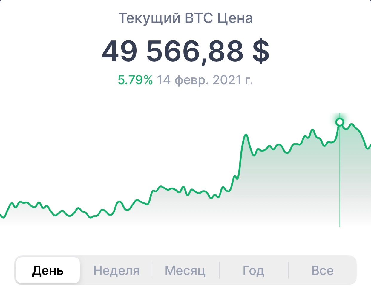 Стоимость Bitcoin 14 февраля впервые превысила отметку в 49 тысяч долларов.