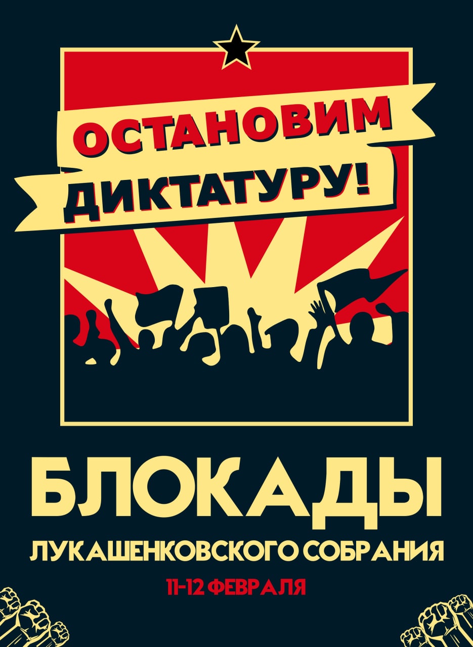 На предстоящих дворовых собраниях или в кругу семьи/друзей подымайте вопрос об участии в акциях по блокированию съезда 11-12 февраля. Пустой зал с диктатором, прилетевшем на вертолете, отправит четкое послание всему беларускому народу. Планы по блокировке будут опубликованы чуть позже, но мы знаем точно, что помощь в Минске нужна будет со всей Беларуси! Поэтому готовьтесь и мобилизуйте окружающих!