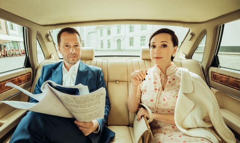 Репетиции «Горбачева» пришлось начинать­ в зуме, потом Евгений сумел добраться до Риги: здесь живет режиссер, а у Чулпан неподалеку­ дача. Когда в центре города шла съемка для GQ, проезжавший мимо президент Латвии Эгилс Левитс остановил машину и попросил Хаматову и Миронова о совместном фото. Причем встал не в центре кадра, а сбоку. Вышла неожиданная иллюстрация к разговору о том, как, распоряжаясь властью, оставаться человеком.