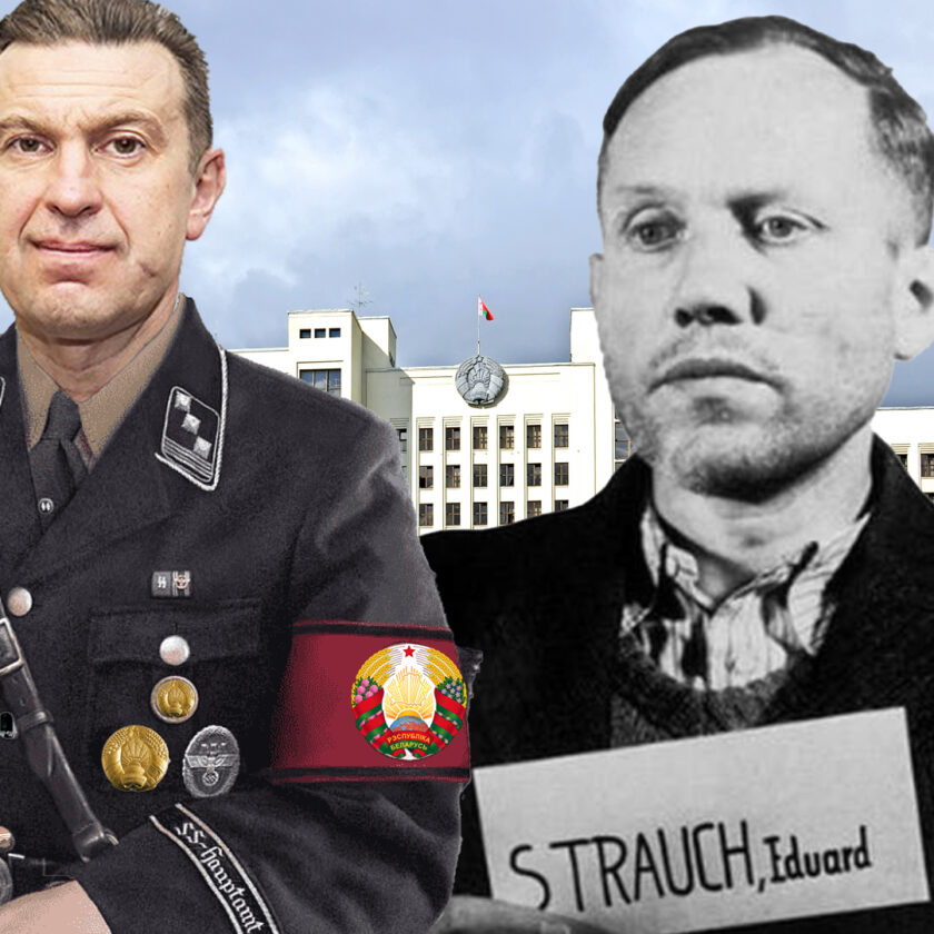 Главным бандитом в Минске во время гитлеровской оккупации стал глава Минска СД алкоголик Эдуард Страух. Этот олигафрен и глава группы Айнзац за два с половиной месяца 1943 года расстреляли в Минске 50 тысяч человек (в основном евреев привезли из Австрии). Как военный преступник СС его должны были повешать на приговор трибунал, но вовремя психанул, повешение отменили и Штрауч жил в тюрьме до 1955 года, после чего скончался.