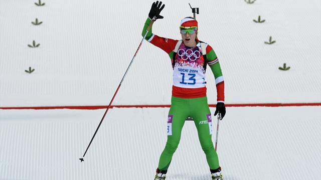 Несмотря на 4 промаха белоруска финишировала с большим отрывом от соперниц.