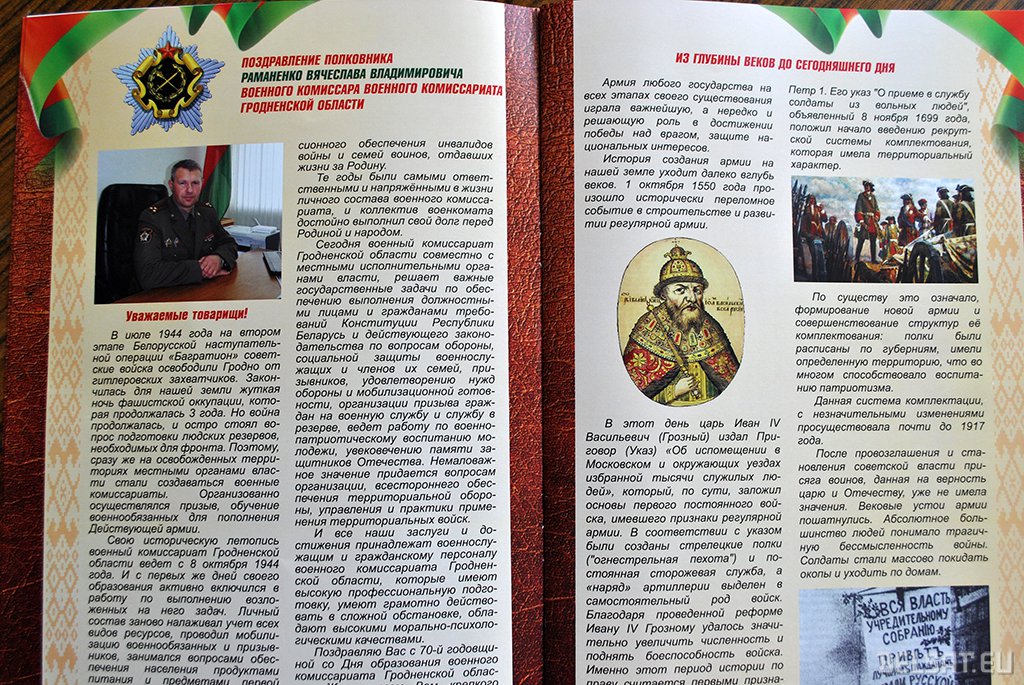 Скандальны буклет выпусціў гарадзенскі Вайсковы камісарыят з нагоды свайго 70-годдзя.