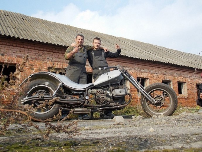 Гомельские поклонники мототехники Евгений Харитоненко и Александр Брабус сначала смотрели фильмы про байкеров на Harley Davidson и гонщиков на хот-родах, а потом подумали и сами собрали чоппер. Журнал Сustomculture.ru опубликовал рассказ молодых людей о том, как они это делали.
