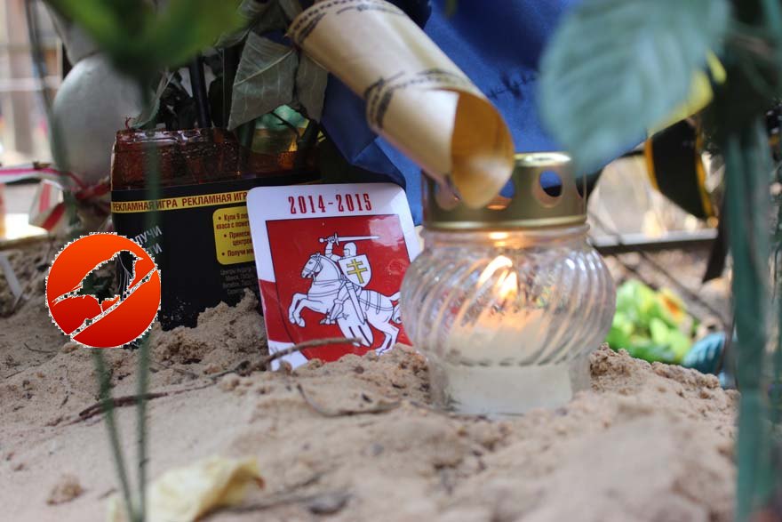 Потым наведалі наведалі могілкі ў вёсцы Знамя Працы Гомельскага раёна. Там пахаваны актывіст Еўрамайдана Міхаіл Жызнеўскі, забіты ў Кіеве.