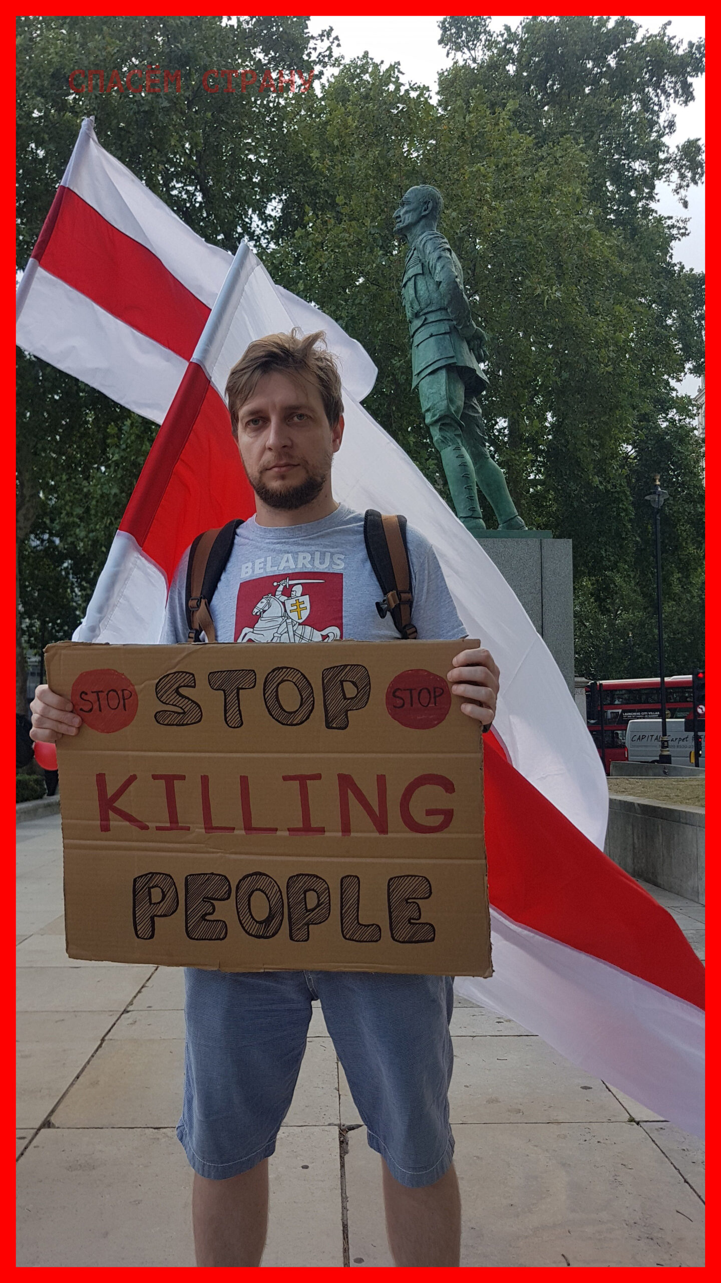 Акция белорусов в Лондоне при поддержке английских властей, которую проводили в поддержку выборов Беларуси и свободе политических заключённых, попавших в плен кровавого диктатора Лукашенко.
