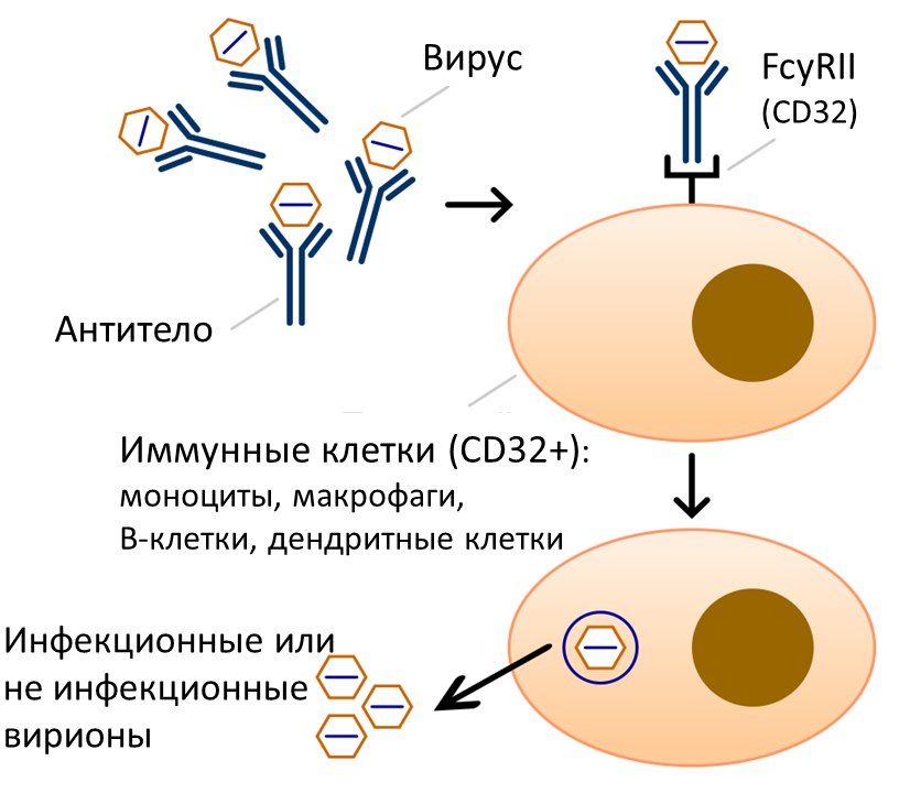То-есть не надо гордиться «у меня много антител», есть антитела которые вирус нейтрализует, а есть антитела, которые помогают вирусу проникнуть в иммунную систему.