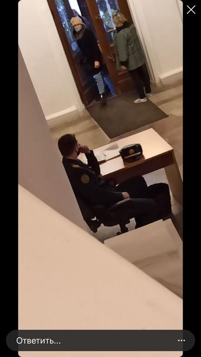 «В Академии искусств на входе вместе с вахтёром появился сотрудник милиции. Сидит на посту — охраняет альма матер. Возможно, нанят в качестве запугивания, чтобы не проводили акции», — предполагает читатель, приславший нам это фото из БГАИ.Bgai Марш пенсионеров 23 ноября в Беларуси || 2020