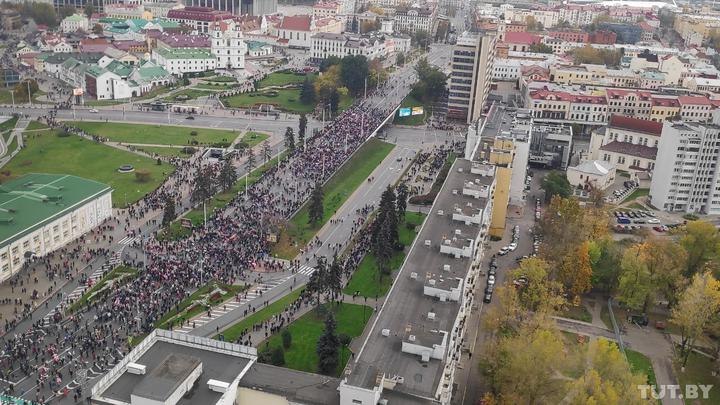 Минск. Это видео с дрона поможет вам лучше понять масштаб акции протеста 25 октября в столице:
