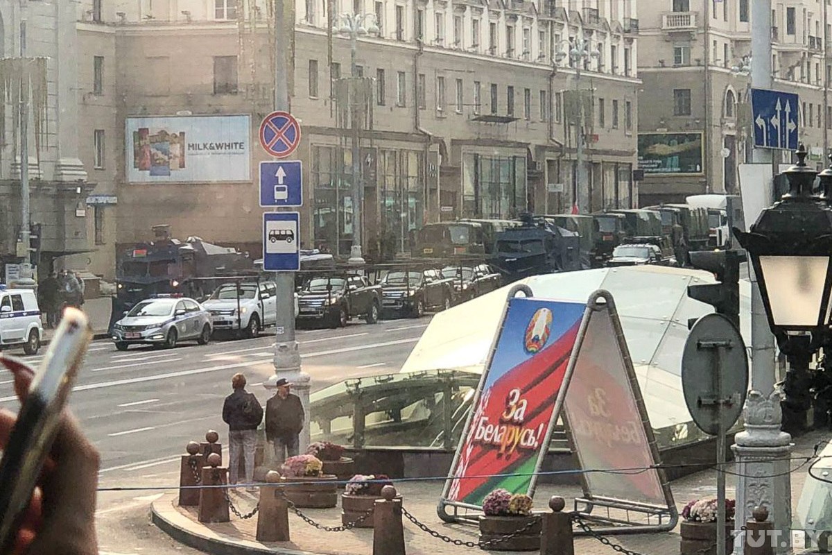 Минск. С самого утра минчане сообщают, что в разных частях города была замечена военная техника и микроавтобусы, на которых часто ездят силовики.