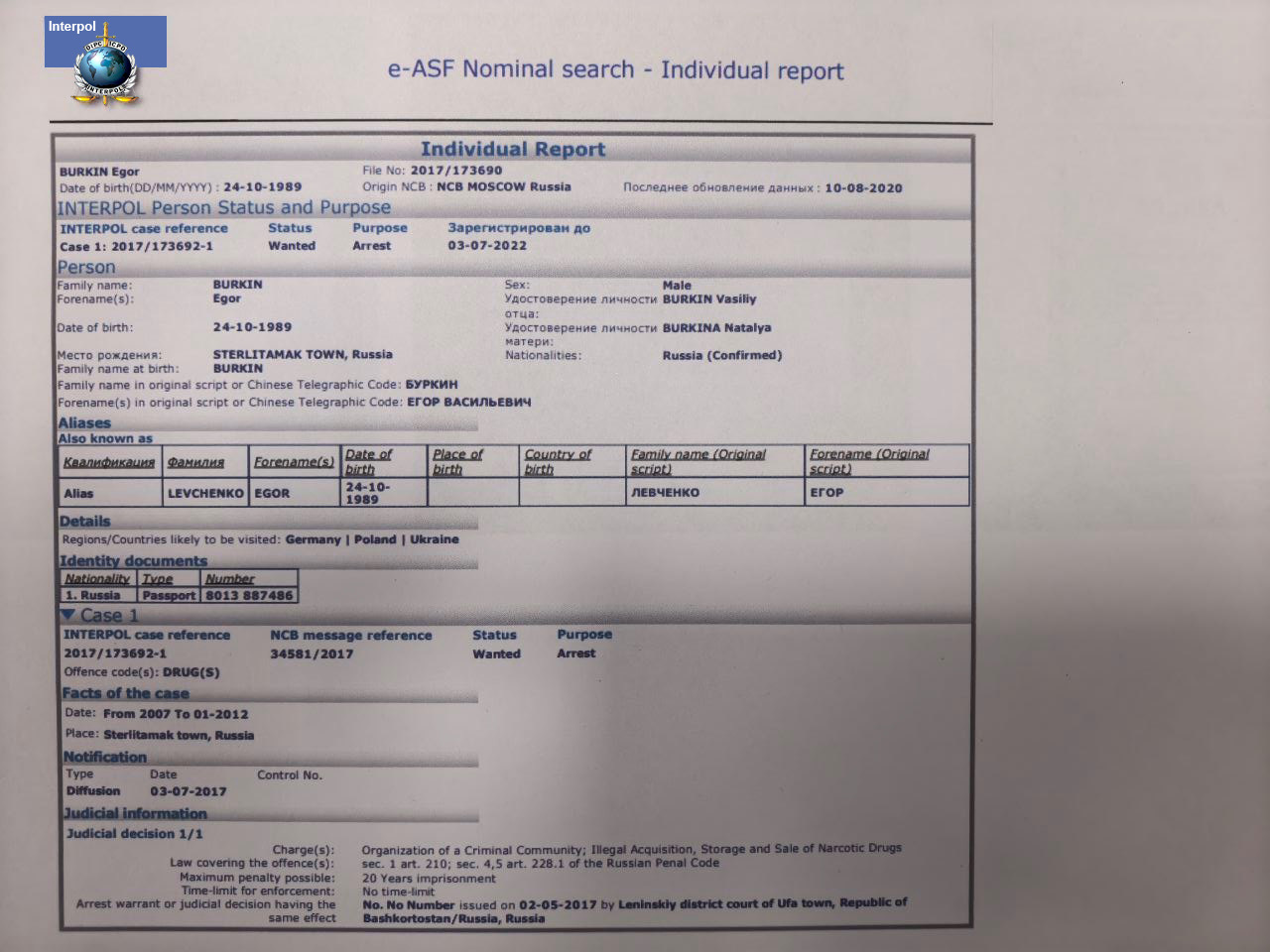 Буркин Егор Васильевич, объявлен в международный розыск Интерпол