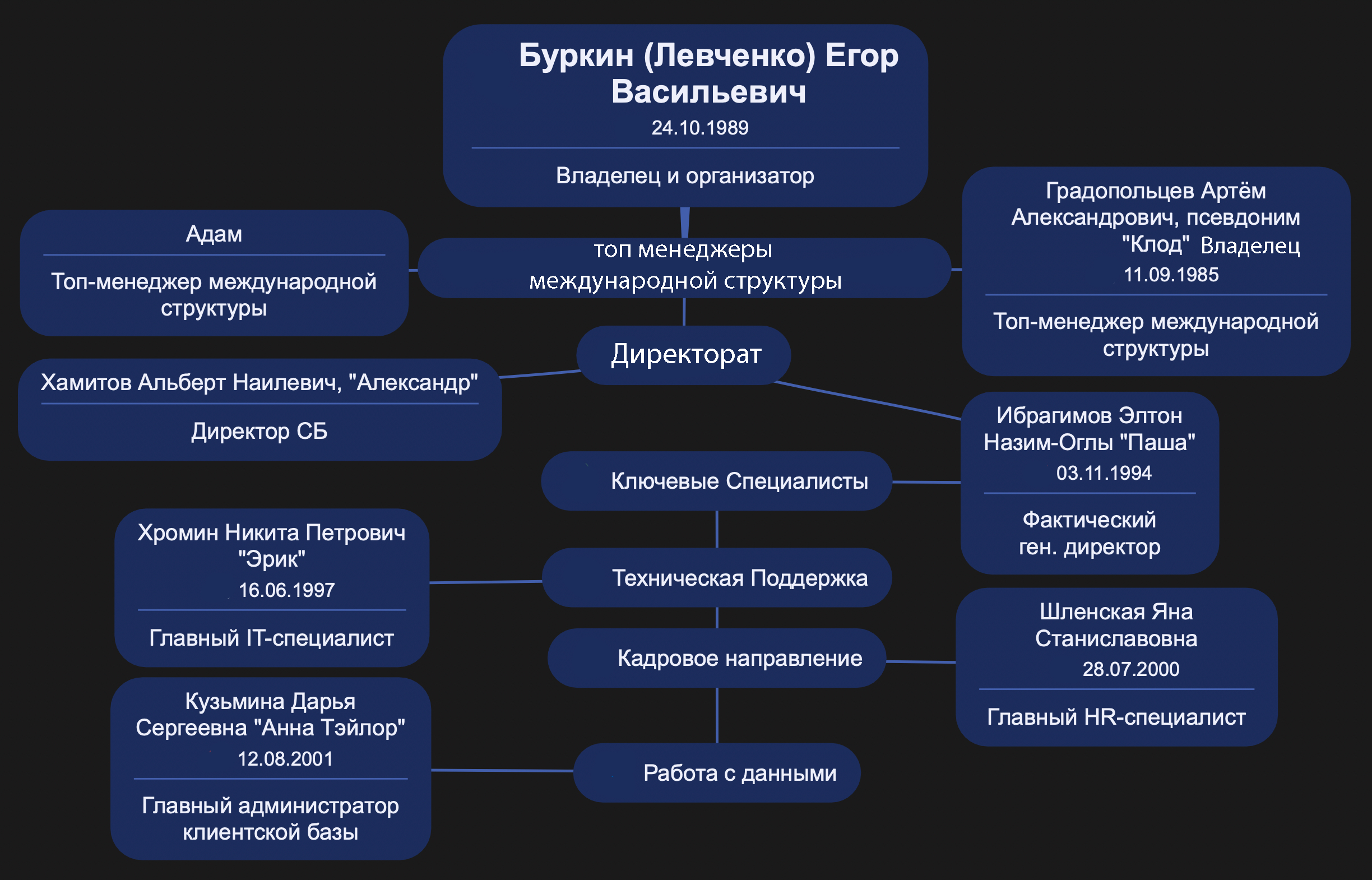 • Буркин (Левченко) Егор Васильевич – известная фигура, считающийся основным бенефициаром всей схемы.