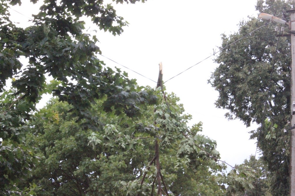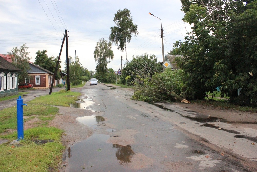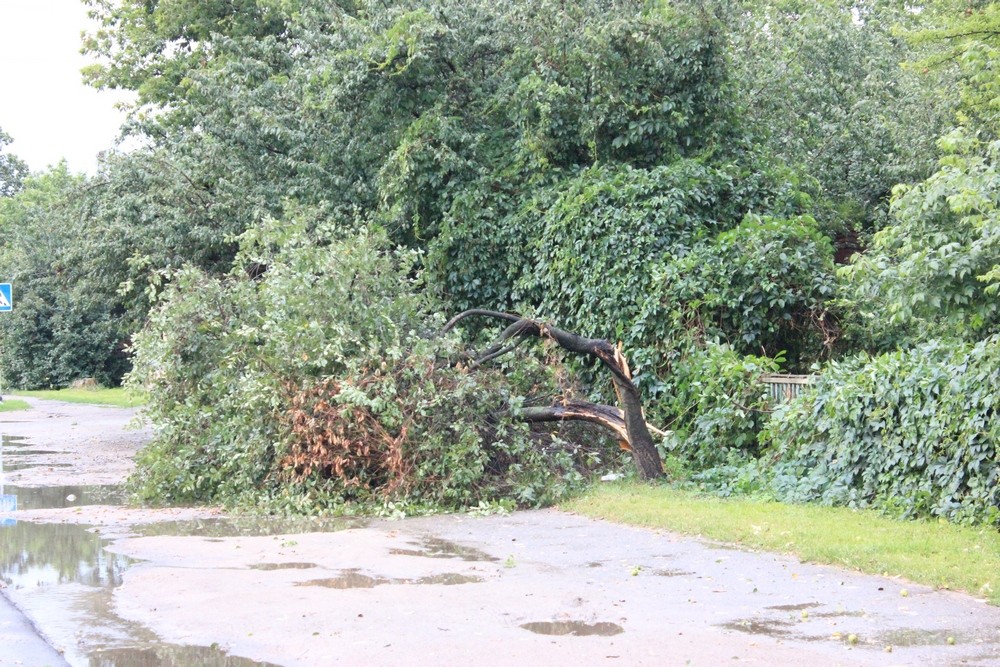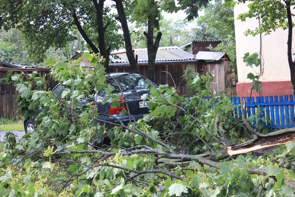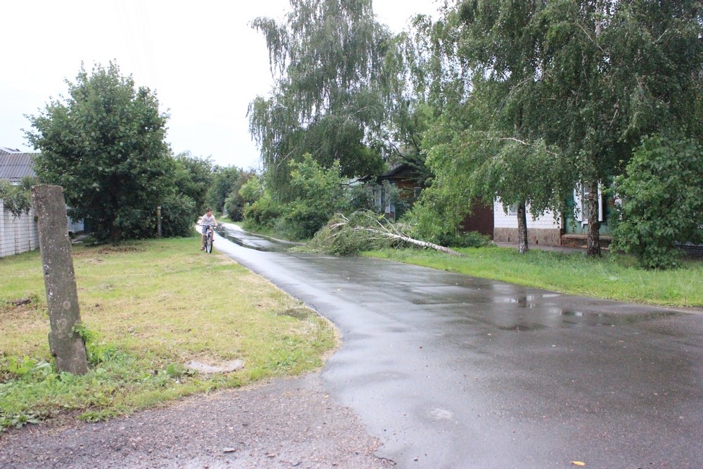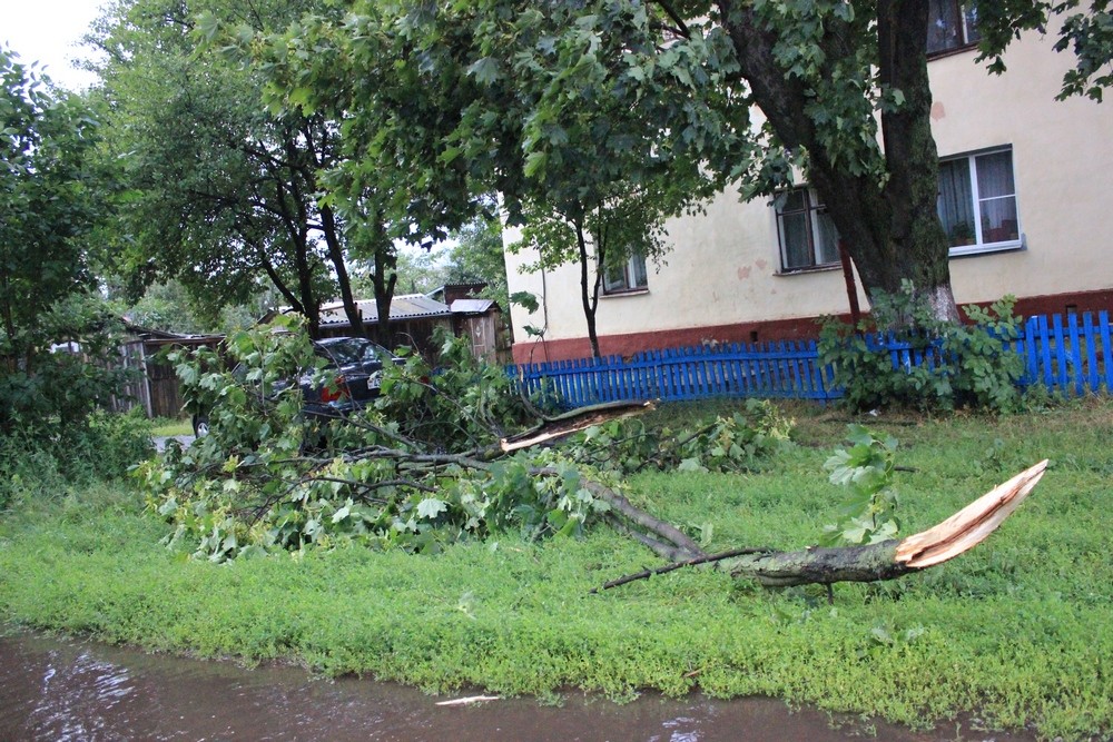 Моцны шквалісты вецер з шчыльным дажджом і градам нарабіў бяды ў Гомелі.