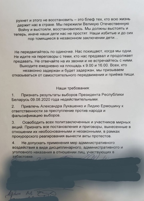По указанию КГБ РБ, занимающегося стачкой ОАО Беларуськалий, против активистов стачки были предприняты все возможные действия по её ликвидации и дискредитации самого стачечного движения. Главным следственным управлением центрального аппарата Следственного управления РБ против участников стачки в настоящий момент фабрикуется уголовное дело, возбужденное ещё 19.08.2020 г. Генеральным прокурором РБ, предусмотренное ч.3 ст.361 УК РБ, по факту совершения призывов к действиям, направленным на причинение вреда национальной безопасности РБ.
