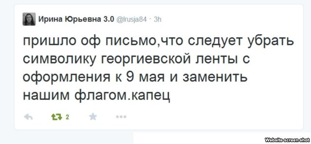 «Ніякіх георгіеўскіх стужак быць не павінна!» — гаворыцца ў паведамленьні.Другі сакратар ЦК БРСМ Андрэй Белякоў распавёў Свабодзе: