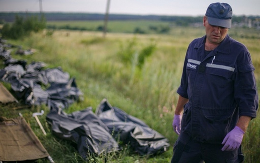 На фото: Украина. Донецкая область. 20 июля. Сотрудники ГСЧС собирают тела погибших на месте падения пассажирского самолета «Малайзийских авиалиний» Boeing 777, следовавшего по маршруту «Амстердам — Куала-Лумпур», в районе села Грабово.