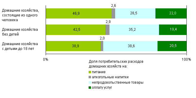 3) Потребительские расходы  –  денежные расходы домашних хозяйств на питание (включая расходы на питание вне дома), покупку алкогольных напитков, непродовольственных товаров и оплату услуг. В состав потребительских расходов не включаются налоги и страховые взносы, материальная помощь и другие расходы, не связанные с потреблением, а также все расходы, связанные с производством сельскохозяйственной продукции в личном подсобном хозяйстве и накоплением (вклады в банки, покупка недвижимости, иностранной валюты и так далее).