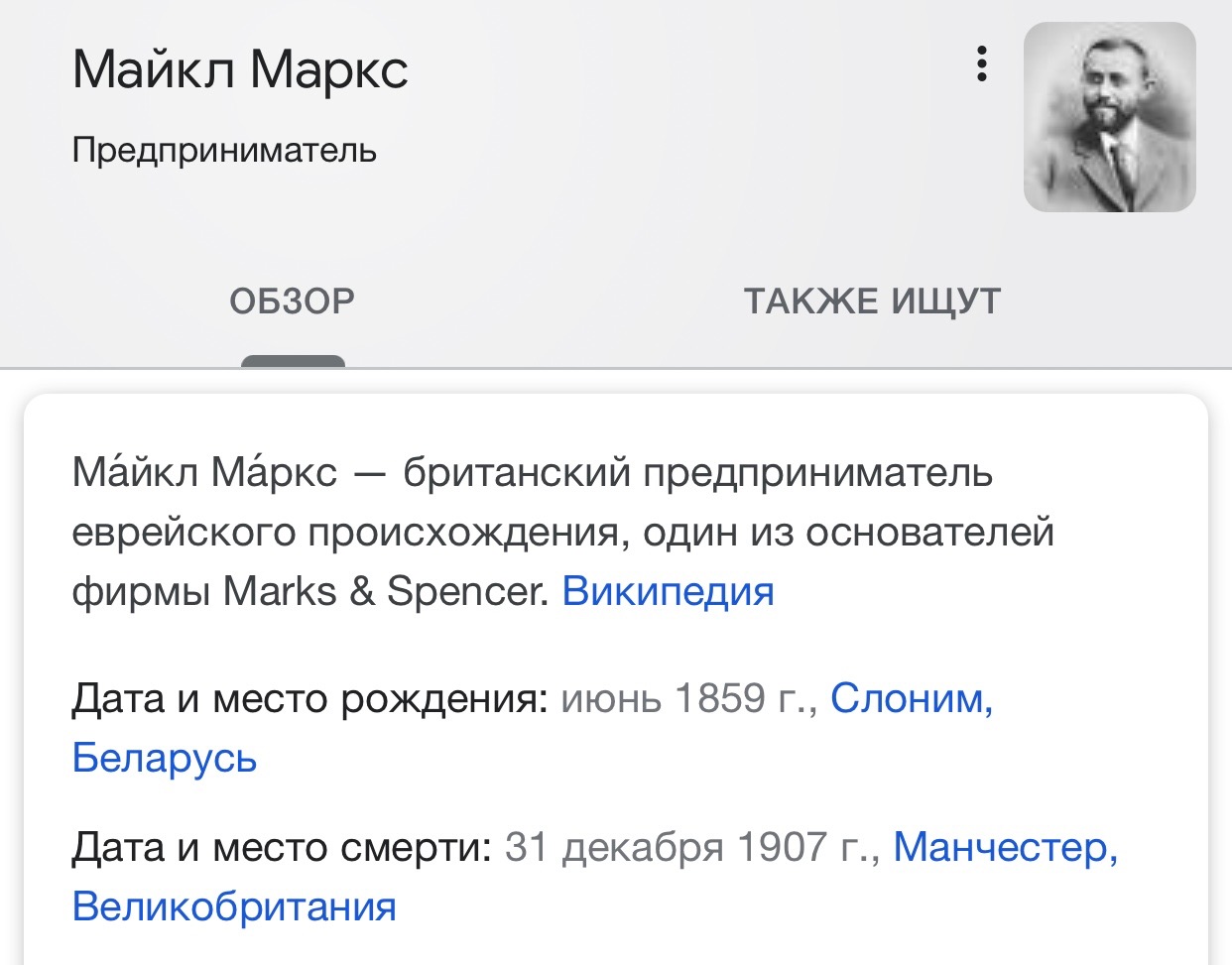 Что сказал бы его дед, закройщик из пыльного Слонима на окраине Российской империи, если бы узнал, что внук его станет «сэром Марксом», пэром, бароном, посвященным в британские рыцари? А на рынке Грейнджер в Ньюкастле-апон-Тайне лоток Маркса сохранили до сих пор, и он до сих пор торгует. Это самый крохотный «Маркс и Спенсер» в мире. С которого все начиналось. Вот он, внизу, на фото.