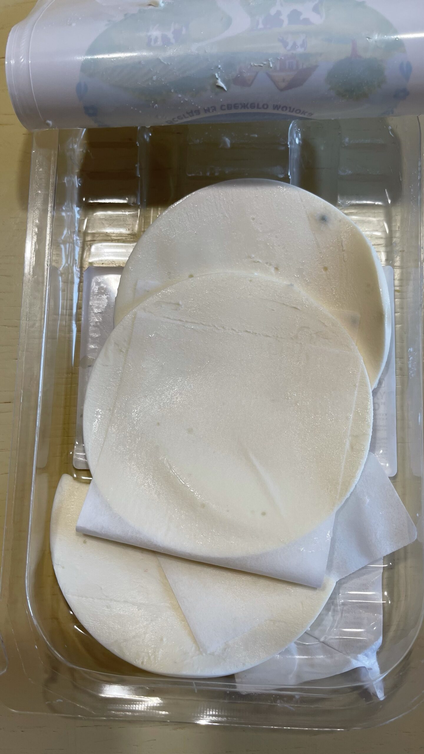На первых ломтиках по выкладке, сыр находится на начальной стадия плесневения, виде еле заметны волосинок плесени. Мы снова позвонили нашим друзьям и пояснили, что вторая упаковка находится в испорченном состоянии и в этот раз мы её не открывали.