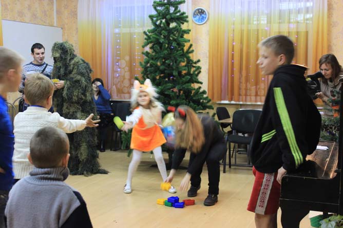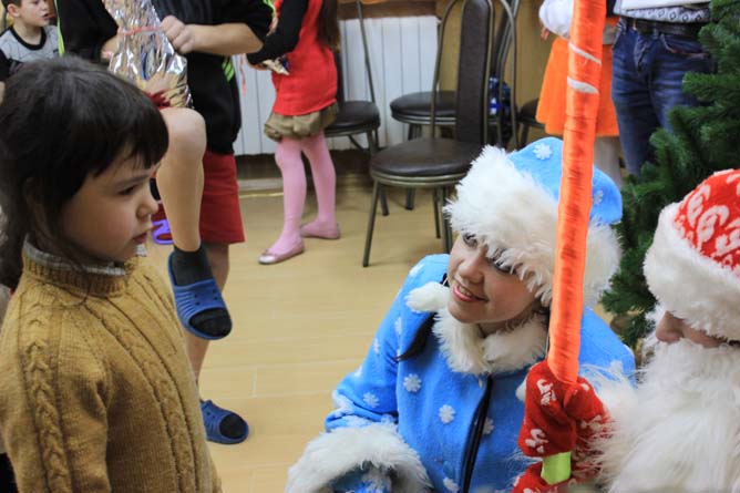 Адным з самых прыемных момантаў ранішніка для дзяцей стала атрыманне падарункаў якія прадставілі неабыякавыя жыхары Гомеля. Напрыканцы святочнай праграмы дзець станчылі разам з казачнымі героямі і праспявалі калядную песню “Звон звініць”.