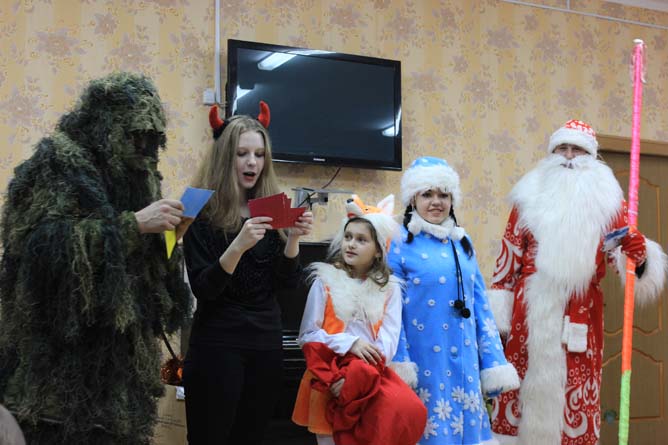 23 снежня вясёлыя казачныя персанажы падарылі маленькім выхаванцам Гомельскага сацыяльна-педагагічнага цэнтра ў вёсцы Бярозкі, дабрачынную навагоднюю ёлку. Сустрэча з Дзедам Марозам , Снягурачкай, беларускамоўнымі казачнымі персанажамі , нечаканыя сюрпрызы і прыемныя падарункі чакалі малышоў. Клопатам і ўвагай у гэты дзень былі атулены дзеці-сіроты — пры жывых бацьках… якія з-за алкагольнай залежнасці пазбавілі сваіх уласных дзяцей — сям’і, усмешак . А часам і магчымасці добра харчавацца, цёпла спаць. памыцца па чалавечы і пацалаваць матулю і татулю нанач… Жыццё не заўсёды ўсміхалася гэтым дзецям, і арганізатары мерапрыемства, пастараліся зрабіць усё ад іх залежнае, каб сёлетняя сустрэча ля прыгажуні-ёлкі пакінула ў душы кожнага малыша добры след. Нездарма ж Свята Божага Нараджэння і Новы год называюць любімым дзіцячым святам! Напачатку святочнай праграмы хлопчыкі і дзяўчынкі паглядзелі навагодняе прадстаўленне, падрыхтаванае звычайнымі жыхарамі Гомеля якія каб падарыць дзецям Свята пераапрануліся у казачных герояў. Потым свята працягвалася ля навагодняй прыгажуні-ёлкі, дзе ў суправаджэнні казачных персанажаў, Святога Мікалая ,Снягурачкі Балотнага чорта і Лесавіка дзеці расказвалі вершы, вадзілі карагоды, гулялі у рухавыя гульні.