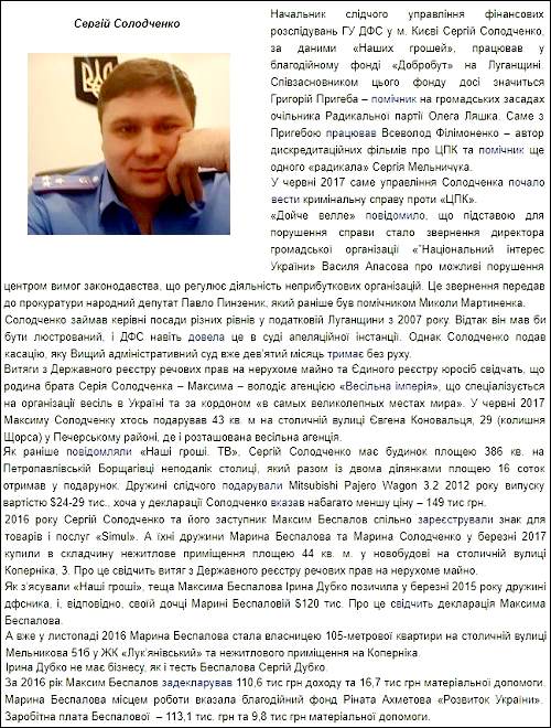 По этому поводу нами были поданы соответствующие заявления в ГПД НАБУ, ГСУ СБУ, ГСУ ГПУ о совершенных уголовных правонарушениях СОЛОДЧЕНКО С.В.