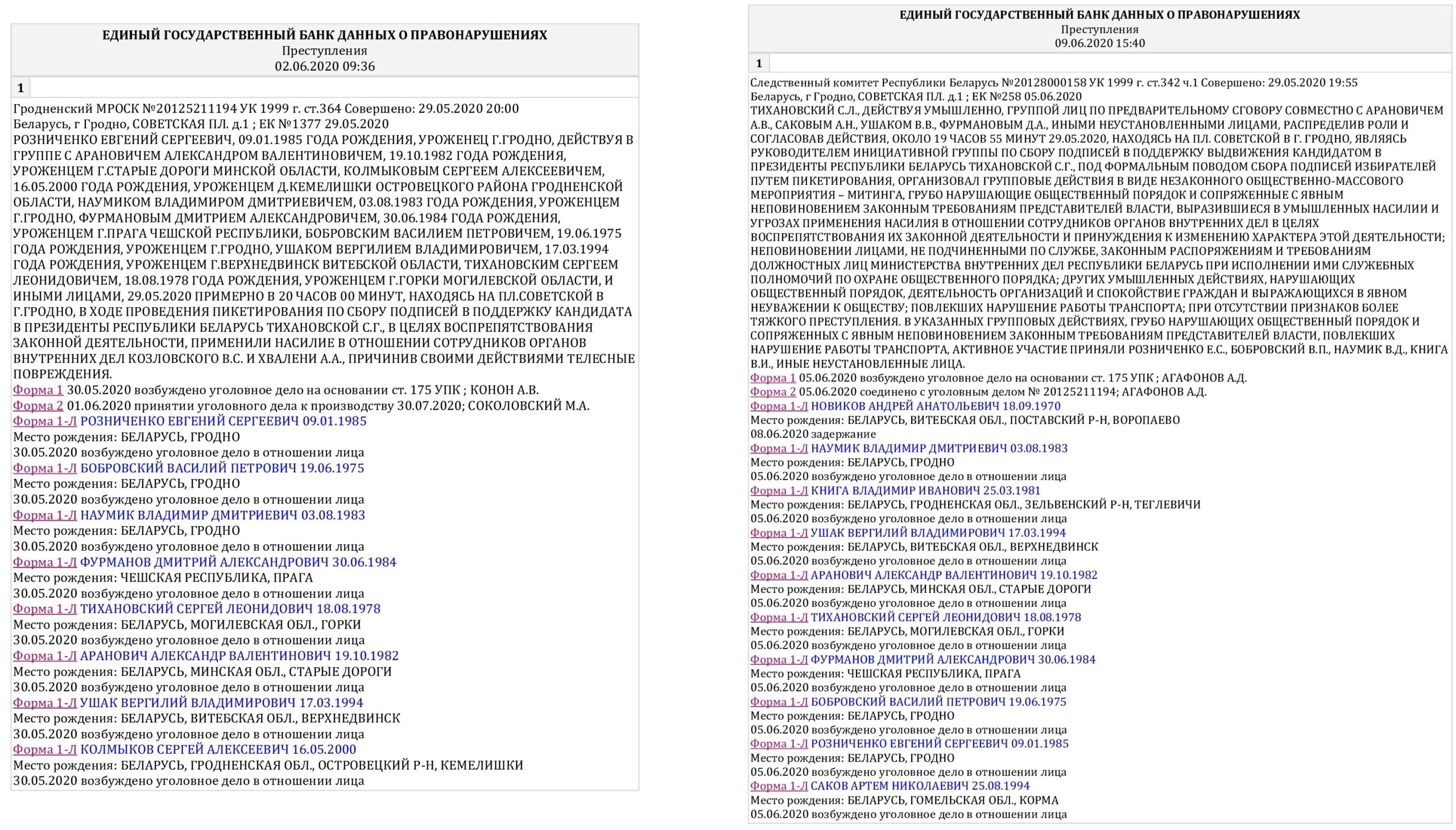 Материалы подтверждающие политическую мотивированность возбуждения уголовного преследования Тихановского Сергея Леонидовича и его соратников.