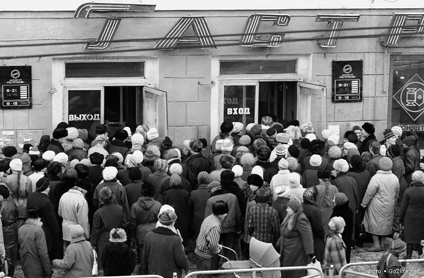 Так что, про ГОСТы и качество не трещите. И про сталинско-хрущевские времена тоже не трещите. Во-первых, я пишу о 70-80-х. Во-вторых, при Сталине с Хрущевым, во времена «Книги о вкусной и здоровой пище», продукты в магазинах еще были, но есть их было решительно некому: все эти балыки, масло, икра народу были недоступны. По свидетельствам продавцов того времени, масло покупали по 30-50 гр., конфет — по 100 гр., колбасы — от силы 300 гр. И не каждый день. За «маслицем» старушки приходили после пенсии. «Полакомиться»… Когда моя мама, проходя стажировку в гастрономе, спросила на каком-то собрании, почему масла по 30 граммов берут, ей ответили: «Очень актуальный вопрос, товарищ стажер! Наши люди хотят каждый день есть свежую продукцию, поэтому ежедневно приходят в магазин за новой порцией масла и колбасы».