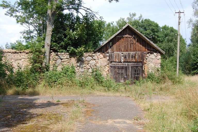 Развалилась и та сама хозяйственная постройка Буттовт-Анджейковичей. Такое ощущение, что она подверглась бомбежке. Правда, основные стены еще стоят, и здание, при желании, можно восстановить.