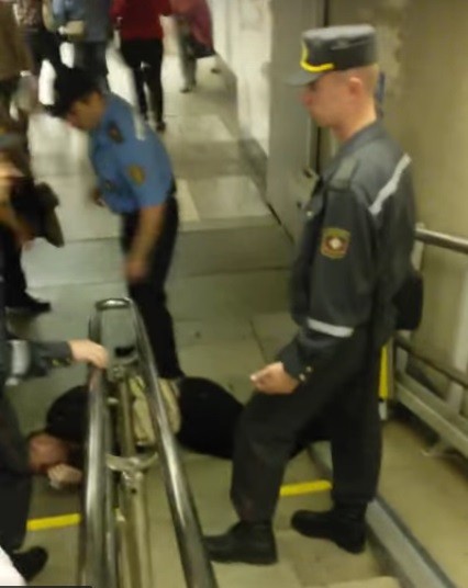 Инцидент, который произошел 18 сентября, всколыхнул интернет-сообщество. Сотрудники милиции попытались задержать слепого человека, который стоял в переходе. Один милиционер схватил инвалида за ногу и потянул его вниз по лестнице. Люди бросились защищать мужчину.