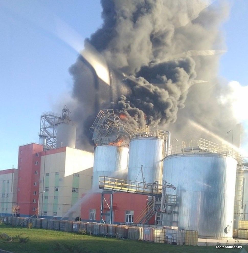 В Светлогорске огромный серьезнейший пожар на целлюлозной фабрике. В УМЧС по Гомельской области рассказали, что при пожаре погиб 1 человек. На месте работают подразделение МЧС. Горит один из резервуаров, по некоторым данным — хранилище таллового масла