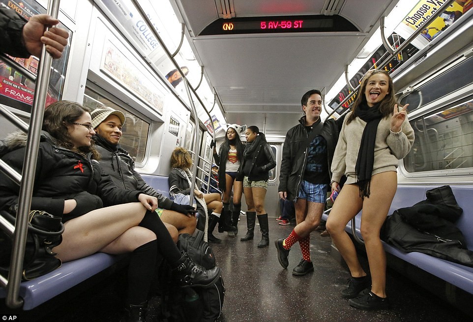 Как отмечает газета, нью-йоркцев, решивших проехаться в местном метрополитене без штанов, не испугала холодная погода. Жители мегаполиса в шляпах, шарфах и пальто «на верхних половинах своих тел» спустились в воскресенье на станции по всему городу и удивили попутчиков, говорится в статье.