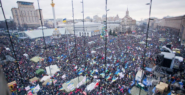 На першым этапе простесты называліся Евромайданом, але пазней перараслі ў Рэвалюцыю годнасці, мэтай якой стала ўхіленне ад улады прэзідэнта Віктара Януковіча. Гадавіна Евромайдана ва Украіне 2014 года.