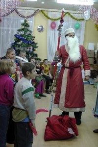 Нашы валанцёры праводзяць Калядны ранішнік з падарункамі .