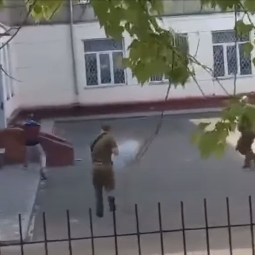 «Мужчина достал нож, бросался на ребят и забежал во двор школы. Наш сотрудник сделал предупредительный выстрел в воздух. От неожиданности злоумышленник споткнулся и упал. Тогда его наконец задержали и передали в руки полиции», — рассказал свою верчию происшествия директор “Муниципальной Варты” Пётр Канарьян.