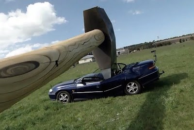 В тот вечер хозяева «Мазды Примаси» — молодая семья с ребенком — вышли на прогулку. На пути повстречали пожилого соседа. Тот обмолвился: «Катаетесь? Катайтесь дальше». Спустя некоторое время автовладельцам позвонили на мобильный и сообщили, что машину бьют. Как выяснилось, топором орудовал дедушка-крепыш. Вдребезги разлетелись стекла и фары, погнулся капот.