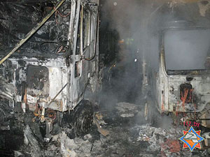 В Гомеле на автостоянке загорелись три фуры