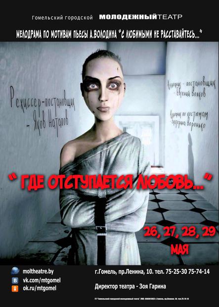 Впрочем, ярким премьерам сопутствовали не менее яркие скандалы. Достаточно вспомнить инцидент с запрещенной афишей к спектаклю «Где отступается любовь»: ее, уже готовую к расклейке, неожиданно не пропустил идеологический отдел горисполкома, объяснив это тем, что она «слишком мрачная». Чиновникам не понравилось изображение девушки на картинке, театру было предложено убрать синяки с ее лица и заменить одежду на более презентабельную.