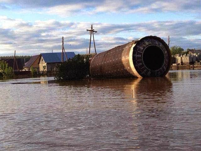 Вот что пишут: “Во время наводнения на Алтае к посёлку Мало – (Угренёво, Бийский район) притащило вот такую штуку. Это ступень от ракеты. Чиновники из роскосмоса постоянно после запусков докладывают, что собирают все части от ракет и производят дезактивацию.”