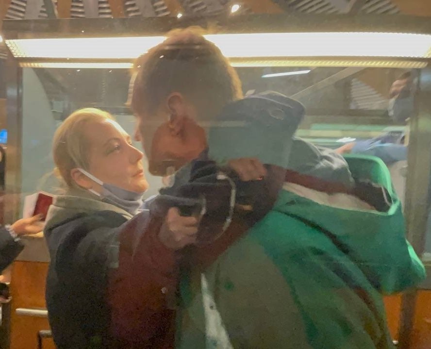 Юлия Навальная в зале выдачи багажа в Шереметьево.