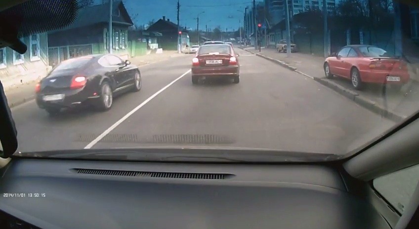 В начале ноября в интернете разместили запись видеорегистратора, на которой видно, как в Гомеле автомобиль Bentley, объехал автомобилистов, ожидающих включения зеленого сигнала светофора, и продолжил движение на красный.