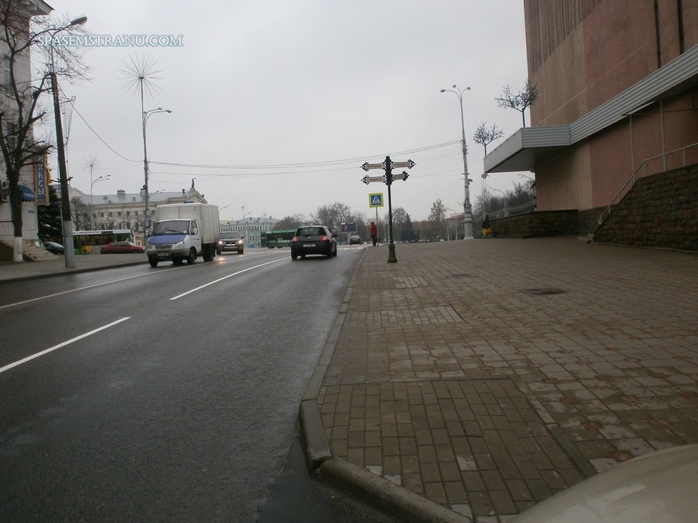 Менавіта лозунг, бо на практыцы ў Гомелі зусім інакш: выезд з плошчы Леніна на вуліцу Пралетарскую – небяспечнае перакрыжаванне, а побач забаўляльны цэнтр Еўропа і палац творчасці дзяцей і моладзі «Юнацтва».