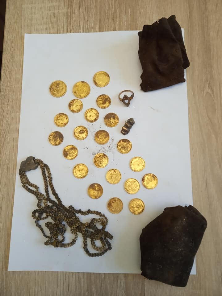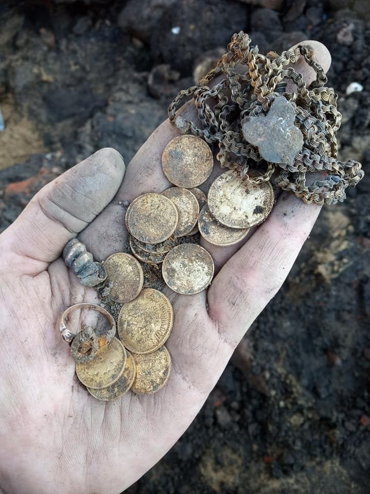 «Присмотрелся, оказалось, что это золотая монета с профилем Николая II. Потом еще, еще … Археолог прибыл через час. Тогда было 16 монет, кольцо, цепочка, зубная коронка (4 зуба) », — говорит историк Павел Королев.